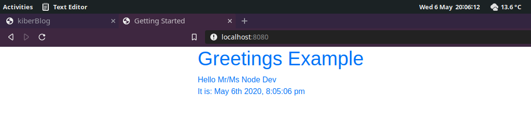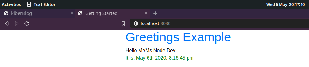 const expected = `<h1>Greetings Example</h1><div id=\"greetings-component\">Hello Mr/Ms NodeJS Dev<div id=\"date-time-greetings-component\">It is: April 30rd 2020, 10:20:00 pm</div></div>`;