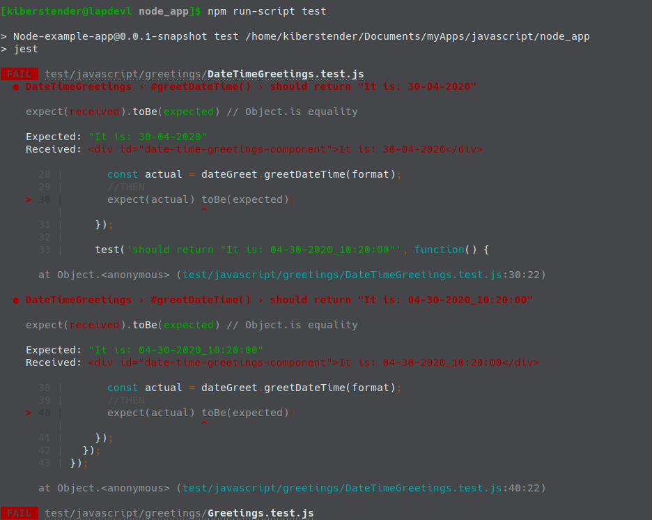 test(`should return "Greetings Example\\nGreetings Hello Mr/Ms NodeJS Dev\\nIt is: April 30rd 2020, 10:20:00 pm"`, function() {