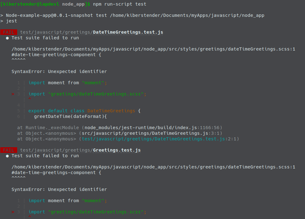 E cá estamos novamente, a mudar os testes para refletirem o código novo. Se você tentar executà- los aogra irá ver que estão quebrados porque o Jest não consegue reconhecer a síntaxe do SASS quando importa- se os arquivos .scss: