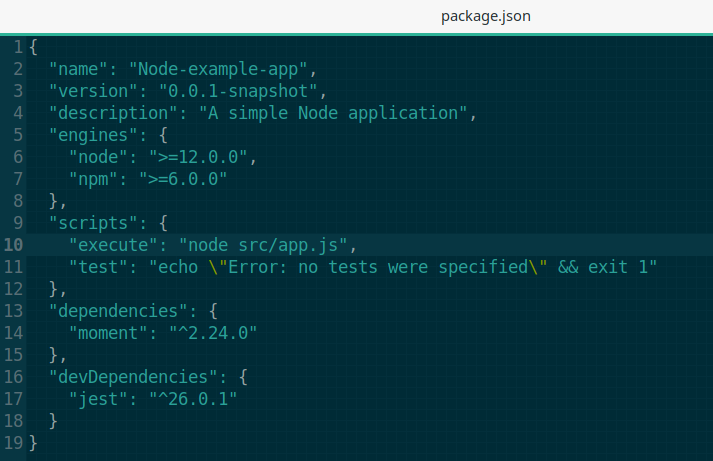 name: This is the name of your application/libraryversion: This is the version of your application/librarydescription: This is where you put a brief description of what your application/library does. This is useful for others who use your applicationm/library and it is displayed in NPM websiteengines: This field is meant to warn the user about which is the best version for your code to run, so you can use any combination of numbers and comparison operators(==, >, <, >=, <=) in the sub fieldsnodeandnpmthat satisfies the condition for your code to run. Like, in the above example I'm saying that if whoever runs my program do not have at least node v12 or higher and npm v6 or higher, the application might not run correctly. "Might" because it does not prevent the application to try to run, it will emit a warning but nothing more. if you want it to not run if conditions are not met, you can create in the root of your app a file named.npmrcand putengine-strict=trueinside it..npmrchas more functionalities but, for this post this one is just enoughscripts: This is where you define the commands to build, build:prod, test, run or whatever you find necessary. Like Maven plugins where you tell maven how to run or compile your applicationdependencies: This is where you define a list of libraries your program dependends on, like React, Angular, MomentJS, etcdevDependencies: This is where you define a list of dependencies that will not be packaged with your code. Imagine you are coding in Coffeescript or Typescript. You don't need to package their compilers to your code, because in the end everything becomes Javascript. But not only compilers, for example, Uglyfy is a program that makes your code awful for anybody to read, once it runs it is not needed anymore, so you list it here instead of normal dependencies property.