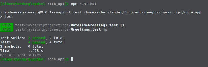 module.exports.Greetings = Greetings;Now come back to the root of our app and create a directory named test, inside it create the same structure we have in our /src: